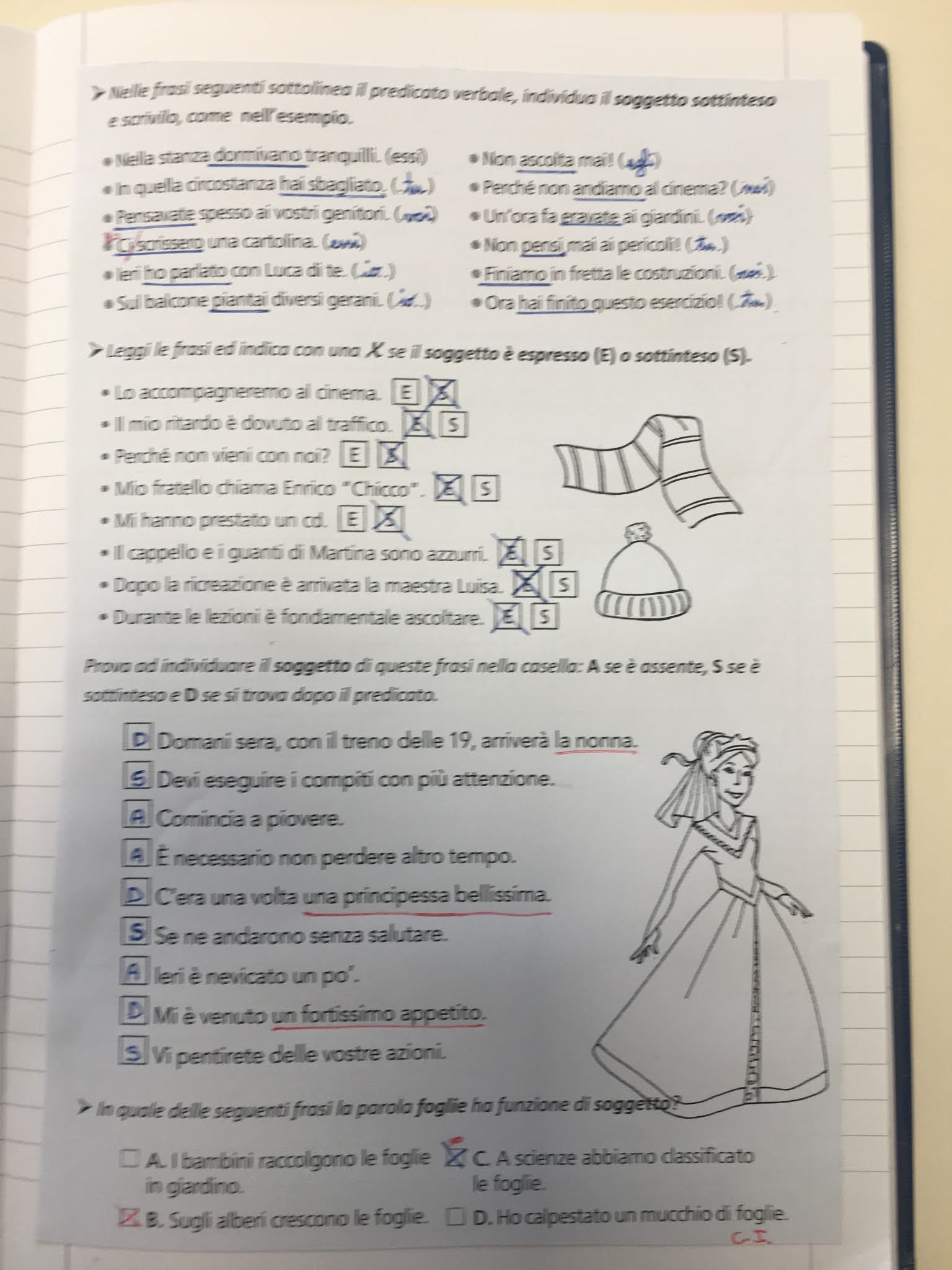 Per prima cosa abbiamo corretto gli esercizi di compito nel quaderno blu, che trovi qui di seguito e puoi correggere anche tu per comparazione.